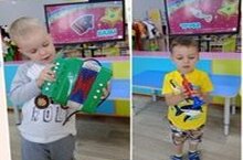 Икенче кечкенәләр төркеме балалары белән музыкаль уен кораллары белән таныштык. Аларны танып истә калдырырга өйрәндек. -
