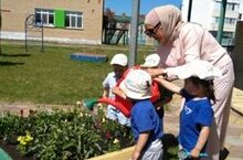 "Бакчачы көне" уңаеннан кечкенәләр төркеме балалары белән чәчәк төрләре белән танышып сулар сиптек, чүпләрен утадык.