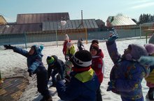 Прогулка в старшей группе. Индивидуальная работа по развитию основных движений. Цель:упражнять в броске снежного кома вверх. 06.04.2017