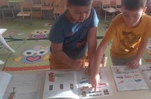 Беренче кечкенәләр төркемендә "Төсле тәгәрмәчләр" темасына әвәләү эшчәнлеге.