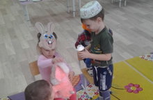 II кечкенәләр төркемендә Яңа ел бәйрәменә "Куян кызы" әкиятен сәхнәләштерүгә әзерлек. 02.12.2016