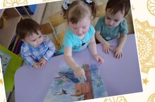 сыерчыкларны, карлыгачларны, аларның ояларын рәсемнән карап танырга, әйтелешлэрен истэ калдырырга өйрәндек.С целью воспитания доброты, заботы о птицах, знакомства с окружающим миром с детьми младшей группы научились распознавать по рисунку скворцов, ласточек, их гнезда.