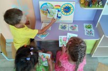 День детского творчества и фантазии (летняя тематика). Воспитатели используют косвенные приемы руководства творческой деятельностью детей. Предварительно воспитатели провели беседы с детьми о лете, совместно с детьми придумывали сюжет и композицию, название работы, исходя из желаний детей.