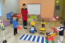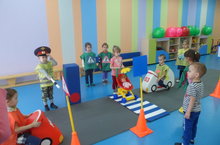 Сюжетно-ролевые игры, просмотр иллюстраций, инсценировка на тему правил дорожного движения. В спортивном зале воспитатели организовали игры по ПДД.