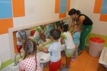 Уборка территории участка, работа в цветнике, стирка кукольного белья.