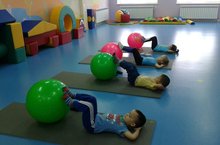 Фитбол-гимнастика 25.01.2016 Дети занимаются фитбол- гимнастикой. Упражнения на мячах тренируют вестибулярный аппарат, развивают координацию движений, и функцию равновесия, оказывают стимулирующее влияние на обмен веществ организма.Упражнения способствуют лечению остеохондроза, сколиоза.