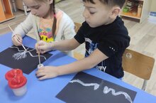 Эстетик кабул итүне, кышкы пейзажның матурлыгына соклану теләген үстерү максатыннан мәктәпкә әзерлек төркеме балалары белән гуашь ярдәмендә дөрес алымнар кулланып, рәсемне биткә матур итеп урнаштыру осталыгын ныгыттык.