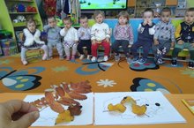 Икенче кечкенәләр төркеме балалары белән әйләнә-тирә белән танышу эшчәнлегендә "Көзге табигать" темасына әңгәмә кордык. Аннары керпе- дускайга яфраклар ябыштырдык.