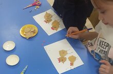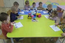 С детьми первой младшей группы мы покрасили "Колеса машин". Познакомились с красками, начали учиться держать кисточки.