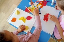 Үз эшеңне һәм башка балаларның эшен төс һәм композицион чишелеш буенча бәяләргә өйрәтелде.Дети подготовительной к школе группы на занятии аппликации изготовили "Осенний ковер". Ребята научились вырезать простые вещи из двухслойной бумаги. Совершенствовали мастерство работы с ножницами и умение красиво подбирать цвета, композиции. Научили детей оценивать свою работу и работу других детей по цвету и композиционному решению.