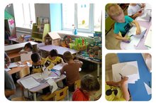 Мәктәпкә әзерлек төркеме балалары кисеп ябыштыру шөгелендә "Көзге келәм" ясадылар. Кайчы белән эшләү осталыгын ныгыттылар. Ике катлы кәгазьдән гади әйберләр кисәргә өйрәнделәр .Төсләрне, композицияләрне матур сайлый белүне камилләштердек.