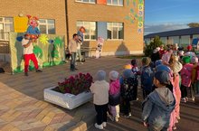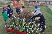 Мәктәпкә әзерлек төркеме балалары белән без киләсе елда утырту өчен уен мәйданчыгында чәчәк орлыклары җыйдык.
