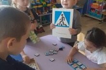 Мәктәпкә әзерлек төркеме балалары дидактик уеннар аша юл билгеләрен танып белергә өйрәнәләр.