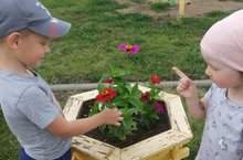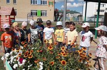 Уртанчылар төркеме балалары белән табигатьне саклау турында белемнәребезне ныгыттык, үзебез дә агачларга су сиптек, уеннар аша агачларны сындырырга, бөҗәкларне таптарга ярамаганлыгын кисәттек, чүпләрне тиешле урынга ташлау турында да онытмадык. Чәчәклекләр янында табигатьтәге матурлык белән сокландык.