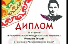 По результатам II Республиканского конкурса детского творчества "Читаем Тукая" - " воспитанница 2 младшей группы Ахметзянова Самира Азатовна стала дипломантом 2 степени.