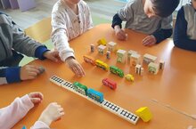 Икенче кечкенәләр төркеме балалары белән кисеп-ябештерү шөгелендә паровозлар ябештердек. Паровоз нинди өлешләрдән тора, нәрсә буйлап йөри һам анда утырып еракларга барырга мөмкинлекне ачыкладык.