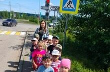 "Светофор-безнең дустыбыз". Зурлар төркеме балалары белән светофорның төсләре һәм аларың нәрсә аңлатулары турындагы белемнәрен ныгыту өчен светофор янында җәяүлеләр булып кечкенә экскурсия үткәрдек.