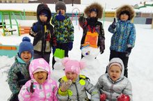 Дети старшей группы делают снеговика и весной.
