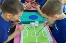 "Сәламәтлек атналыгы" кысаларында зурлар төркеме балалары белән физик тәрбия эшчәнлегендә традицион булмаган әсбаплар кулланып, әти- әниләр белән ярдәмләшеп эшлибез. Һәр бала ни дә булса ясап алып килде. Буген без мини- футбол, ерактан төз ату корылмасын сынадык.