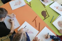 Уртанчылар төркеме балалары трафарет белән керпе ясарга өйрәнделәр, табигатьне саклау турында әңгәмә үткәрделәр.