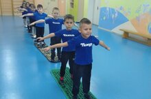 Зурлар төркемендә иртәнге гимнастика. Массажлы коврикларында йөру бик файдалы.