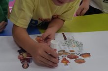 Туган телләр һәм халыклар бердәмлеге елы кысаларында зурлар төркеме балалары татар халкының милли ризыклары белән танышуны дәвам иттеләр һәм коллаж ясадылар.