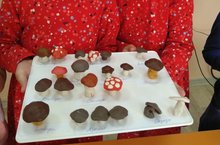В рамках года родных языков и народного единства, в старшей группе провели занятие по лепке на тему "Грибы". Расширили знания детей о грибах (грибы бывают съедобные и несъедобные). Учили выделять сходства и отличия грибов. Активизировали в речи названия грибов. Учили лепить грибы, передавая относительную величину и разные виды шляпок (вогнутые и выпуклые).