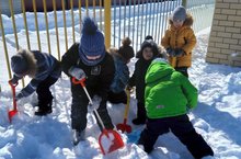 Уртанчылар төркеме балалары белән саф хавада ирекле уеннар уйныйбыз. Яз җитүгә карамастан, кар эле күп, рәхәтләнеп таудан шуабыз, окоплар казыйбыз, кояшны, кардагы эзләрне күзәтәбез.