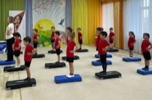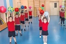 Уртанчылар төркемендә физик культура шөгелендә обручларны тәгәрәтергә өйрәндек, туп белән күнегүләр ясадык.