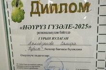 Мәктәпкә әзерлек төркемендә тәрбияләнүче Әхмәтҗанова Самира регионара "Нәүрүз гүзәле" бәйгесендә катнашып, сайлап алу турында җиңү яулап, финалга үтте. Самирага уңышлар телибез!!!