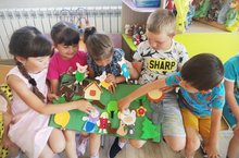 Өлкән төркем балалары белән җәйге пейзаж ясадык, җәй турында шигырьләр өйрәндек.