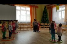 Беренче кечкенәләр төркемендә музыка эшчәнлеге. Балалар "Чыпчыклар һәм песи" җырлы уены белән таныштылар.