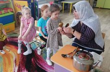 Дети средней группы познакомились с бытом татарского народа, повторили знани о старинной и современной посуды.