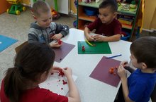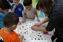 “Ләйсән” балалар бакчасының мәктәпкә әзерлек төркеме балалары иҗекләрдән сүзләр төзеп, рәсемнәре белән тоташтырырга өйрәнәләр.