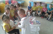 “Ләйсән” балалар бакчасының икенче кечкенәләр төркеме балалары Доктор Айболитта кунакта булдылар. Балалар тәрбияче апалары ярдәме белән рәсемнәр аша табиблар хезмәте белән таныштылар һәм “Хастаханә” сюжетле-рольле уенын уйнадылар.
