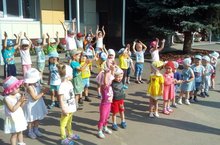 «Ләйсән» балалар бакчасында һәр көн иртәнге гимнастика белән башлана. Бөтен төркем балалары саф һавада физик күнегүләрне яратып, тырышып ясый.