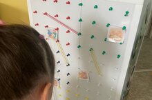 Резинкалар белән геоборд - логопедик уеннар һәм бала үсеше өчен бик яхшы күпфункцияле инструмент. Уртынчы төркем балалары белән "Геоборд" уены белән танышуны дәвам иттек. Бу юлы геобордны сөйләм үсеше сыйфатында кулландык. Балалар резинкалар ярдәмендә "Чуар тавык" әкиятенең эзлеклелеген күрсәттеләр һәм әкият сөйләделәр. -