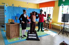 Все группы нашего детского сада сегодня посмотрели спектакль "Чебурашка, будь осторожен!". Спектакль был посвящён правилам дорожного движения. Через весёлые игры, песни и танцы дети вспомнили знаки и правила дорожного движения.