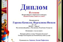 Воспитанницы детского сада "Лейсан" получили диплом 2-й степени за исполнение песни "Звезда моего отца" на всемирном конкурсе "Защита Отечества-слава". Руководитель-Лилия Заянова. Поздравляем с успехами!
