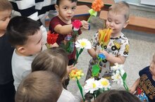 Балалар, музыка дәресендә чәчәкләр белән биергә өйрәнделәр. Алар чәчәкләргә сак карадылар, чәчәкләр белән бию хәрәкәтләрен өйрәнделәр, бию аша үсемлекләргә мәхәббәт тәрбияләделәр.