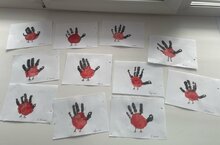 Также малыши рисовали эту удивительную птицу нетрадиционной методикой рисования — ладошками. -