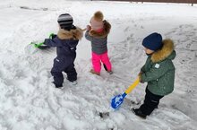 Дети второй младшей группы время зря не теряют. Во время дневной прогулки успевают и играть, и помогать воспитателям расчищать снег. Ребенок, помогающий с детства, и впредь будет старательным, трудолюбивым. -