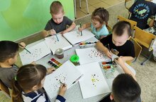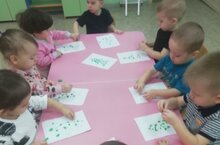 Беренче кечкенәләр төркемендә бармаклар ярдәмендә традицион булмаган рәсем эшчәнлеге узды. Балалар тәрбияченең ярдәме белән бармаклар белән кар бөртекләрен ясадылар. Бармак белән буяу - яхшы рефлектор массаж. Кулда тәннең барлык органнары белән бәйле булган билгеле бер нокталар бар. Бу нокталарга массаж ясап, тулаем организмның хәлен яхшыртуга ирешеп була. Шуңа күрә бармаклар белән рәсем баланың эмоциональ һәм физик халәтенә уңай йогынты ясый.