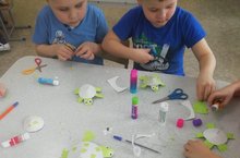 Дети старшей группы на занятии по аппликации смастерили из цветной бумаги лягушек. Воспитанники расширили свои знания о земноводном, развили мелкую моторику и поговорили о бережном отношении к природе.