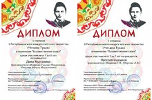 «Тукайны укыйбыз» II Республика балалар иҗаты конкурсына йомгак ясалды. Безнең балалар нәфис сүз номинациясендә актив катнаштылар. Жюри карары буенча, I дәрәҗә диплом белән мәктәпкә әзерлек төркеме балалары Демидова Сабрина, Муртазина Динә, Шахмаев Ярослав, III дәрәҗә диплом белән кечкенәләр төркеме тәрбияләнүчесе Юнусов Айгиз бүләкләнде.