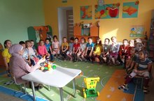 Мөслим районы “Ләйсән” балалар бакчасында “Туган телләр һәм халыклар бердәмлеге елы” кысаларында, мәктәпкә әзерлек төркеме балалары белән дөрес туклану, витаминнар турында сөйләштек, табышмакларга җаваплар бирдек. Балалар бик кызыксынып тыңладылар. Үзләренә күп файдалы мәгълүматләр алдылар.