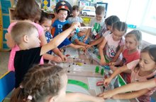 Бүген Мөслим "Ләйсән" балалар бакчасының уртанчылар төркемендә балалар су сиптерү алымнарын кулланып, трафаретлар ярдәмендә сурәтләр төшерергә өйрәнделәр. Максат: балаларда пөхтәлек,түземлелек ,тәрбияләү.