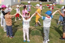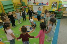 Бүген Мөслим районы "Ләйсән" балалар бакчасының уртанчылар төркеме балалары саф һавада төрле хәрәкәтле уеннар уйнадылар. Максат: хәрәкәтле уеннар аша, балаларның физик үсешен, сәламәтлеклерен, хәрәкәт координациясен яхшырту.
