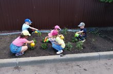 В МБДОУ "Ляйсан", в рамках "Года родного языка и нородного единства", дети старшей группы помогают поливать и полоть грядки на участке. Дети расширяют свой кругозор, узнают о пользе употребления овощей.