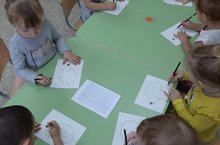 Кечкенәләр төркемендә рәсем эшчәнлеге. Балаларны керпе белән таныштыру, әзер рәсемгә туры һәм вертикаль сызыклар ярдәмендә энәләр ясарга өйрәтү. Балаларның вак кул моторикасын устерү, рәсем ясауга кызыксыну уяту.